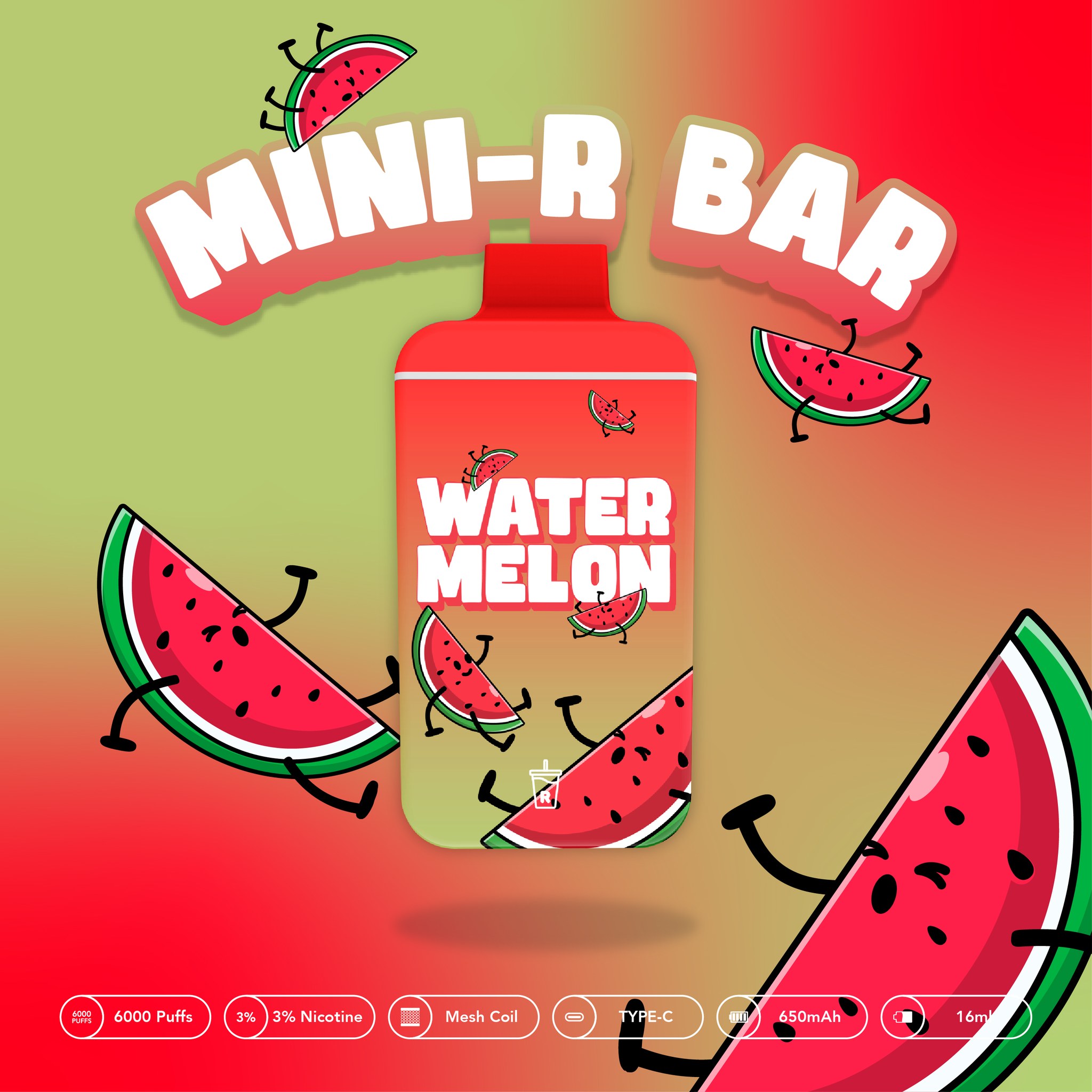 MINI R-ONE BAR 6000 PUFFS DISPOSABLE: Watermelon